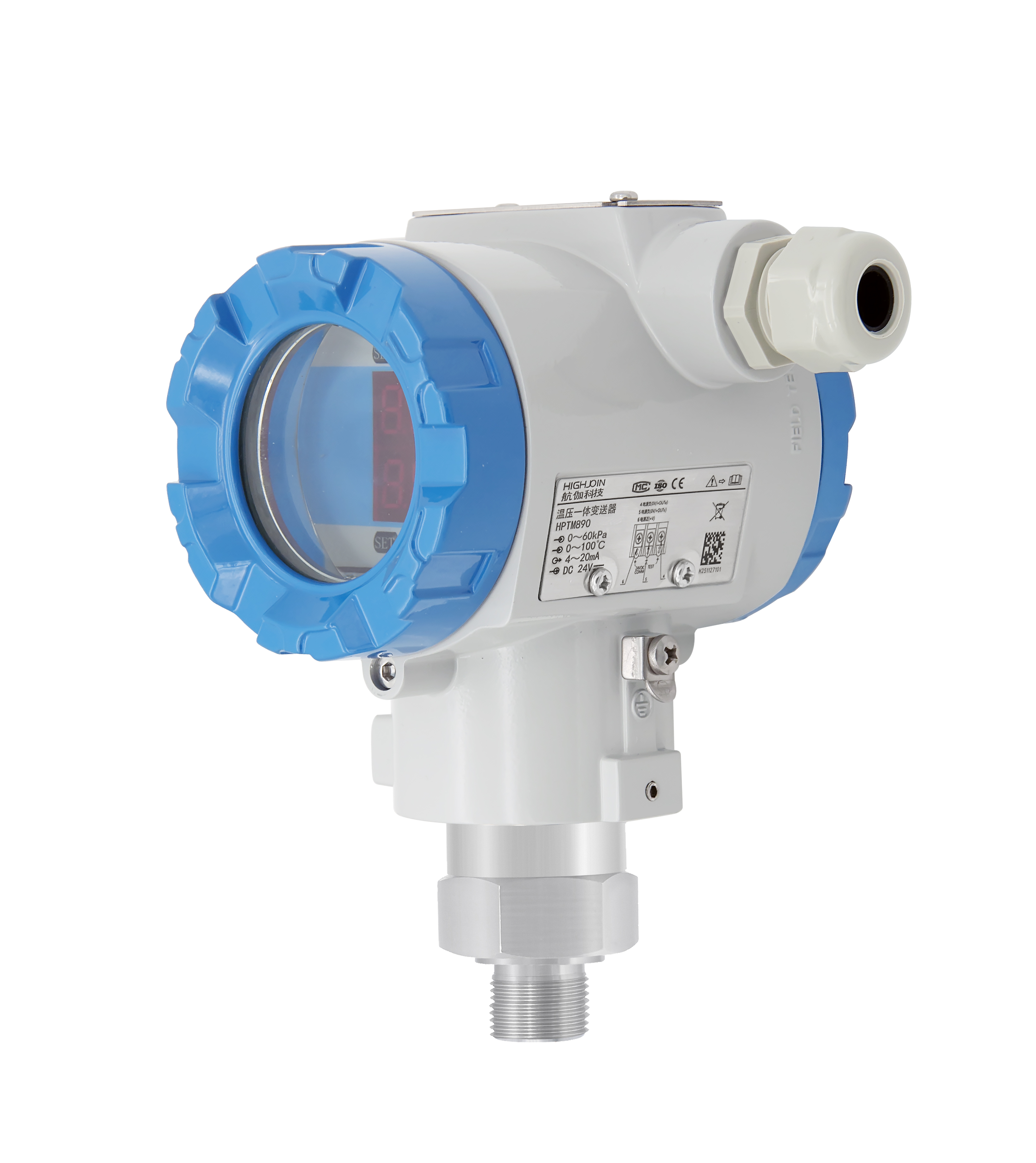 Le transmetteur de température et de pression à affichage numérique HPTM890 intègre un élément sensible à la pression très stable et un élément sensible à la température de haute précision pour une mesure indépendante, permettant une mesure simultanée et précise de la pression et de la température moyennes. Il peut produire deux signaux standard 4-20 mA. De plus, ce produit dispose d'un affichage LED à deux rangées de 4 chiffres qui peut afficher simultanément les valeurs de pression et de température.